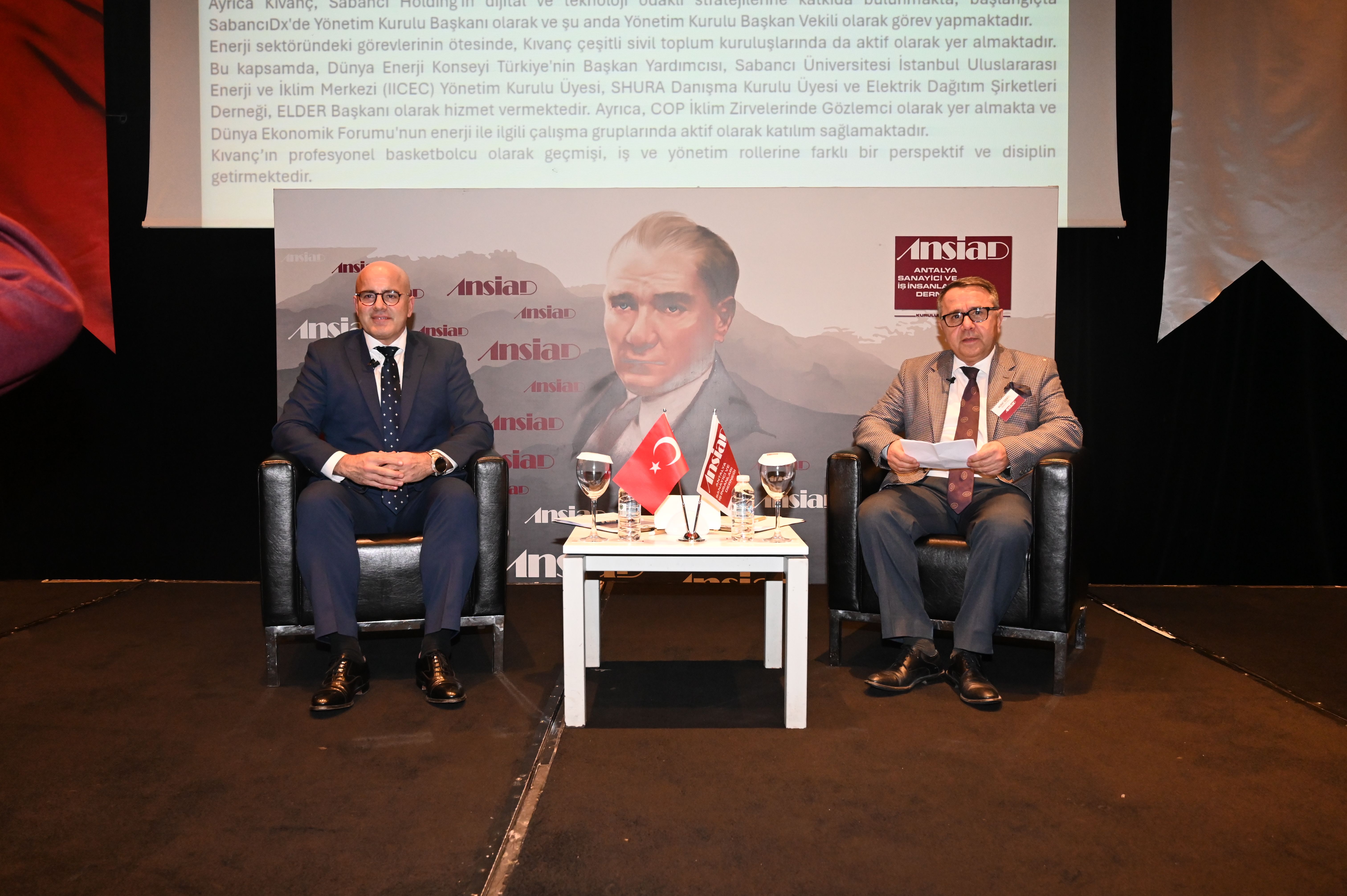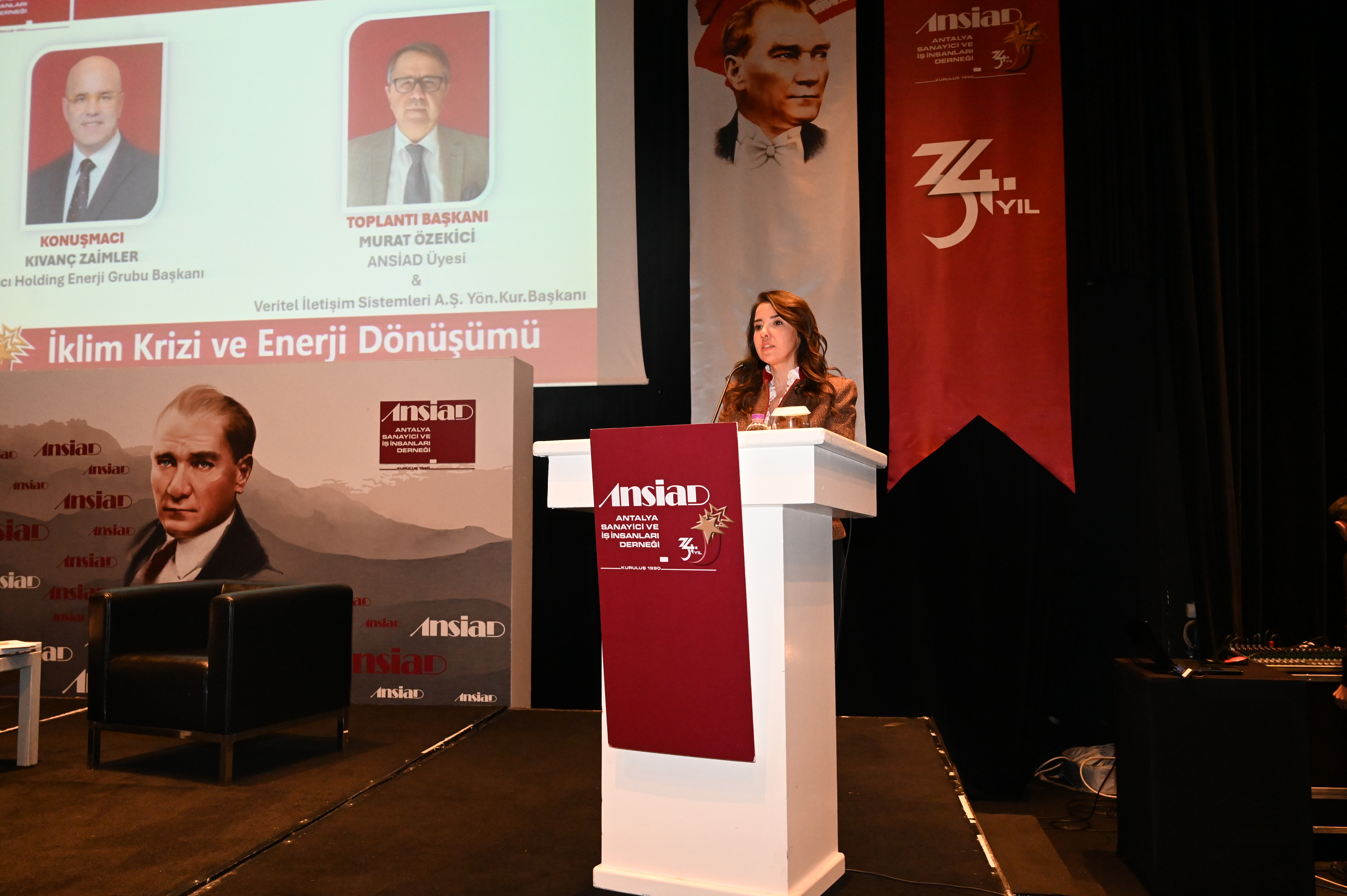 Toplantı başkanlığını, ANSİAD Üyesi & Veritel İletişim Sistemleri A.Ş. Yönetim Kurulu Başkanı Murat Özekici’nin yapmış olduğu ANSİAD 2024 yılı faaliyet dönemi 17. ve son Olağan Toplantısı’nın konuğu Sabancı Holding Enerji Grubu Başkanı Kıvanç Zaimler oldu. "İklim Krizi ve Enerji Dönüşümü" konu başlığıyla 24 Aralık 2024 tarihinde Sunis Otel Su'da gerçekleştirilen toplantıya, Antalya Ticaret ve Sanayi Odası Meclis Başkanı Ahmet Öztürk, Antalya Büyükşehir Belediyesi İklim Değişikliği ve Sıfır Atık Daire Başkanı Melike Kireçcibaşı, ANSİAD üyeleri ve basın mensupları katılım sağladı.