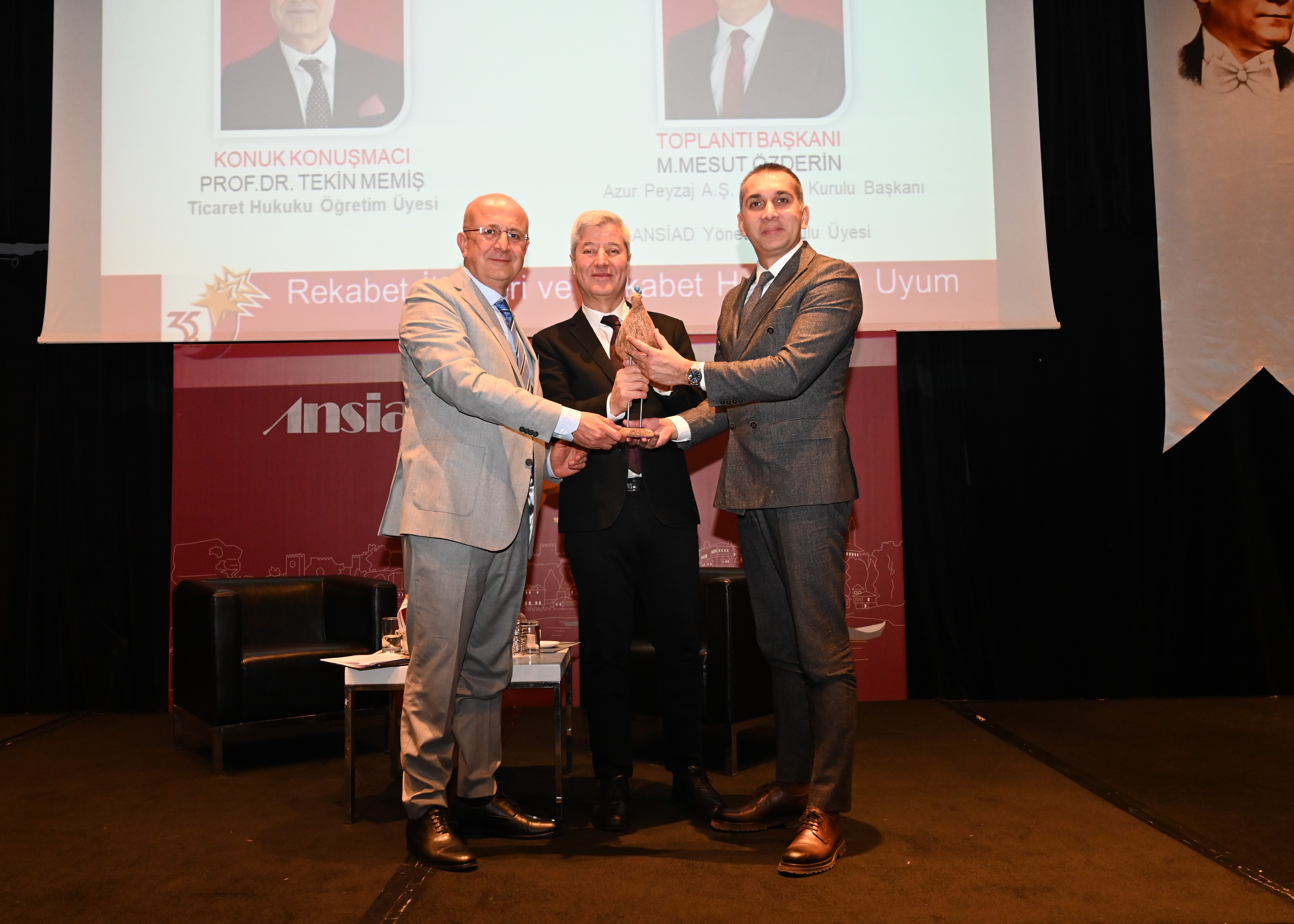 ANSİAD 4. Olağan Toplantısı soru cevapların ardından, ANSİAD Yönetim Kurulu Başkanı Ercan Özbek’in günün anısına toplantının başkanlığını yapan Azur Peyzaj A.Ş. Yönetim Kurulu Başkanı & ANSİAD Yönetim Kurulu Üyesi M. Mesut Özderin ile konuğumuz, Ticaret Hukuku Öğretim Üyesi Prof. Dr. Tekin Memiş’e Antalyalı Seramik Sanatçısı Tufan Dağıstanlı’nın seramik kuşu hediye takdimi ile sona erdi.